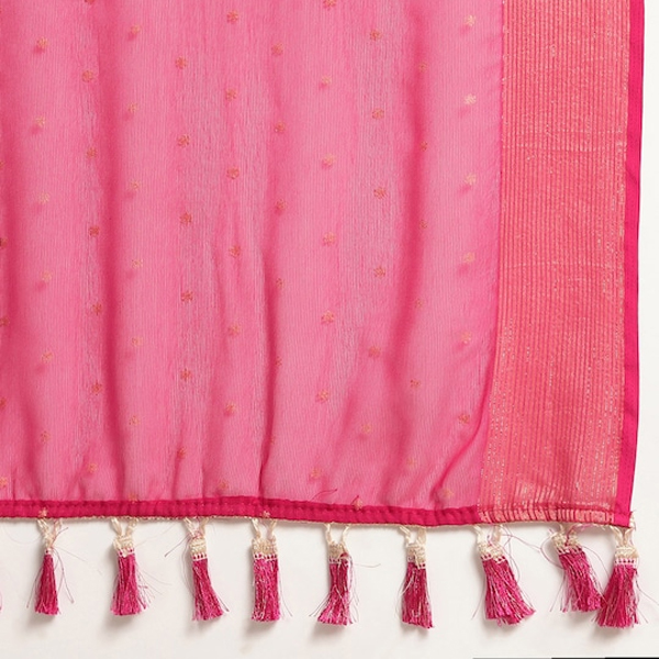 0 review(s) for "Pink & Gold-Toned Floral Zari Pure Chiffon Saree"